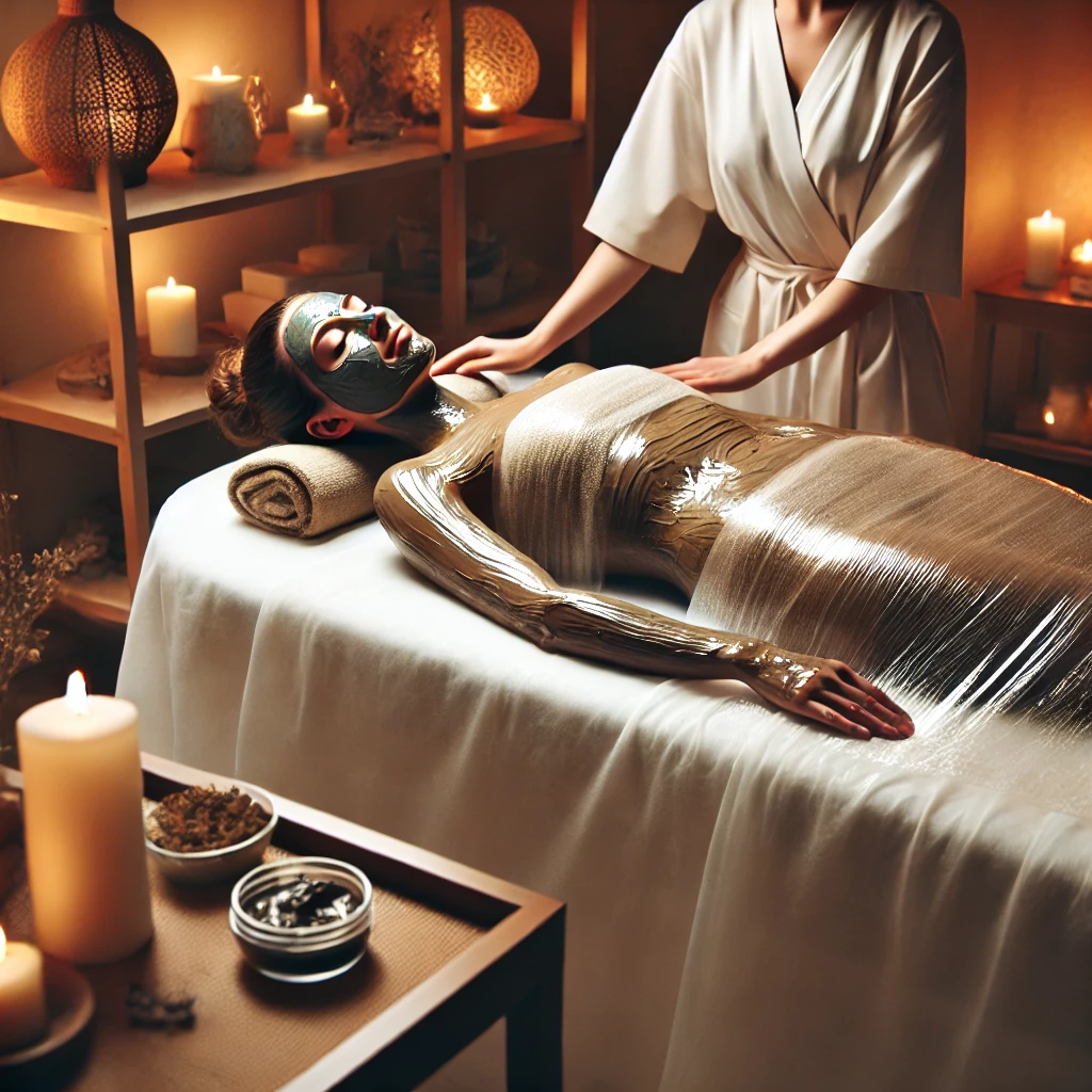 A body wrap detoxifies and nourishes the skin, leaving it feeling revitalized, toned, and deeply moisturized.
